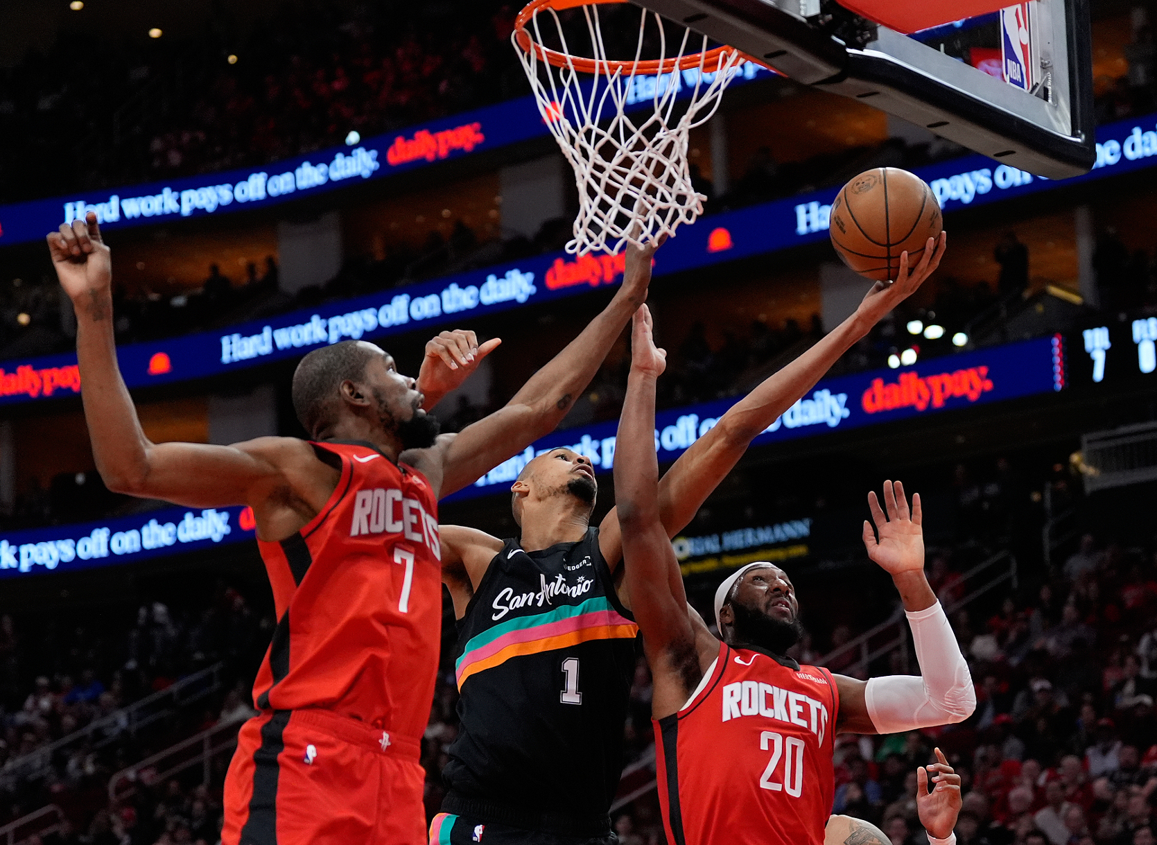 易边再战火箭连续的三次传球失误帮助马刺打出一波小高潮,乌度卡忍无可忍只能暂停。申京先助攻KD,随后连续两次单打科内特,一次造犯规,一次勾手命中帮助火箭追分,但卡斯尔命中三分,凯尔登抛投命中火箭再度暂停。卡佩拉连拿4分帮助火箭缩小到10分,芬尼压哨三分不中火箭未能缩小到个位数。