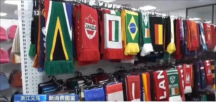 在义乌国际商贸城三区的体育用品专区,有一家主营足球球迷服的商户。四年前卡塔尔世界杯,当时店老板通过观察各个参赛队球迷服的订单走势,特别是赛前追单情况,成功预测了阿根廷队会夺冠。体育经济和义乌市场之间,就这样有了一次特别巧妙的联动。