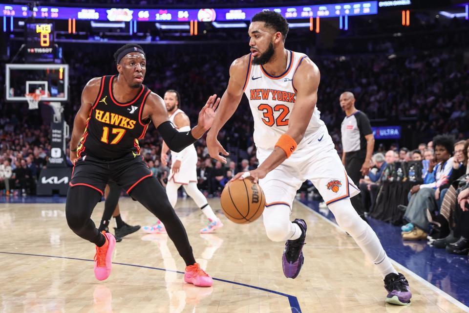 杰伦-布伦森面对老鹰时堪称MVP级别表现,场均砍下29.3分7.8助攻。但如果卡尔-安东尼-唐斯每晚都对阵老鹰,他恐怕会直接拿奖拿到手软。这位尼克斯中锋在两次交手中场均28.5分、命中率63%、13.5篮板,几乎进入传说级的60/50/90高效俱乐部。两人合计场均比赛季总场均多出11.6分。