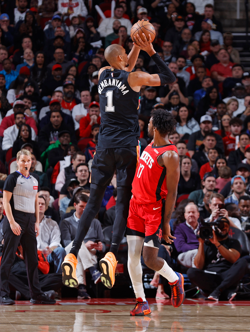 次节开场文班亚马持球突破卡佩拉完成隔扣,阿门完成一个2+1,马刺又利用三分球将分差拉开到16分之多,好在火箭利用快攻再度缩小到10分打停马刺。马刺上半场三分25中11,三分命中率高达44%,罚球更是9中9,而火箭上半场只有5个三分,罚球12中7,上半场打完火箭落后马刺10分之多。